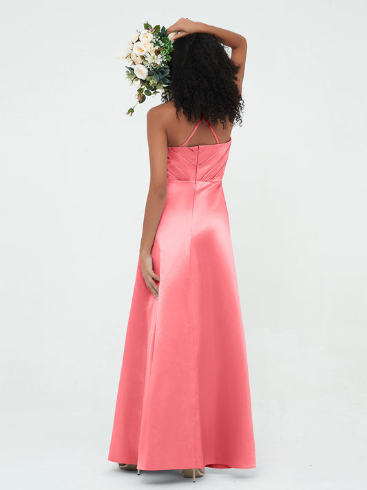 Babaroni TrudaVestidos máximos de satén estilo A-line con cuello halter y bolsillos Sandía