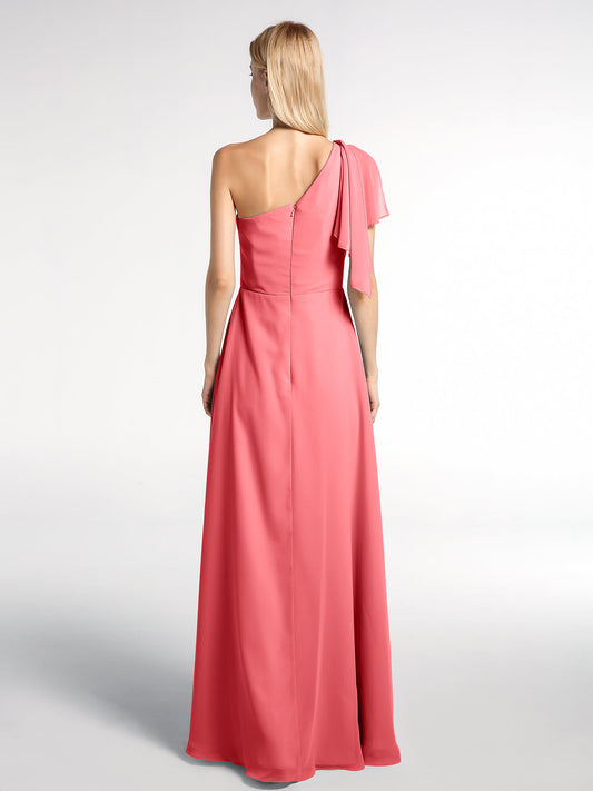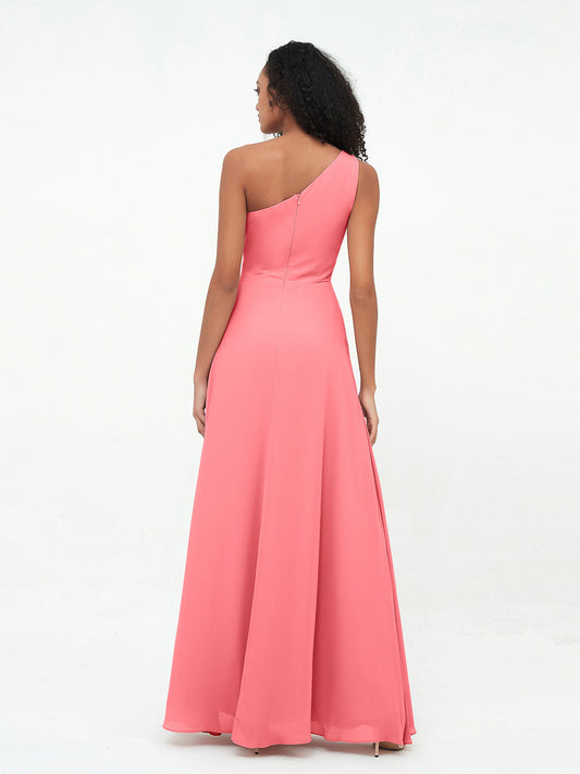 Babaroni XantheVestidos máximos de chiffon de un solo hombro con abertura Sandía