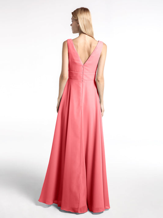 Babaroni SibylVestido largo de chiffon sencillo con escote en forma de muesca Sandía