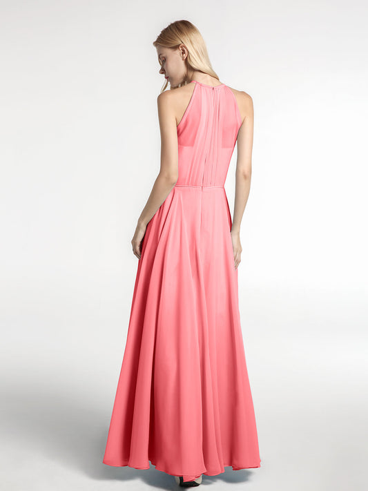 Babaroni ToveVestido maxi de chiffon con cuello halter y falda circular Sandía