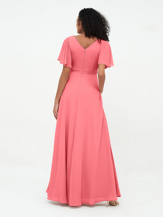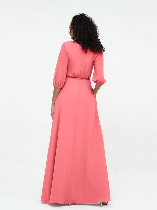 Babaroni UnaVestidos máximos de chiffon con escote en V profundo y mangas 1/2 Sandía