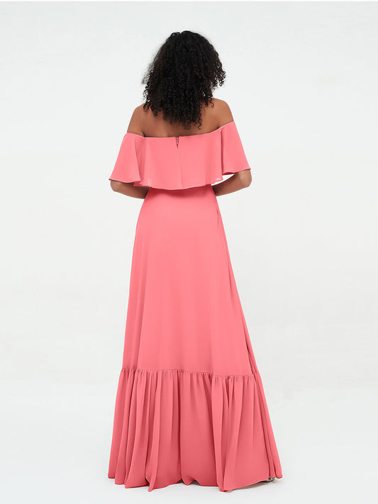 Babaroni RoseVestido maxi de chiffon con hombros descubiertos y volantes Sandía