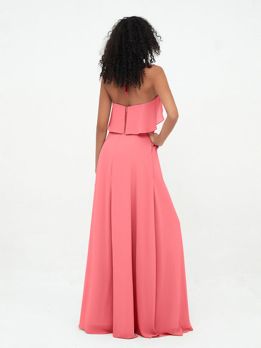 Babaroni AmyVestidos largos de dama de honor de chiffon con tirantes de cuello halter Sandía