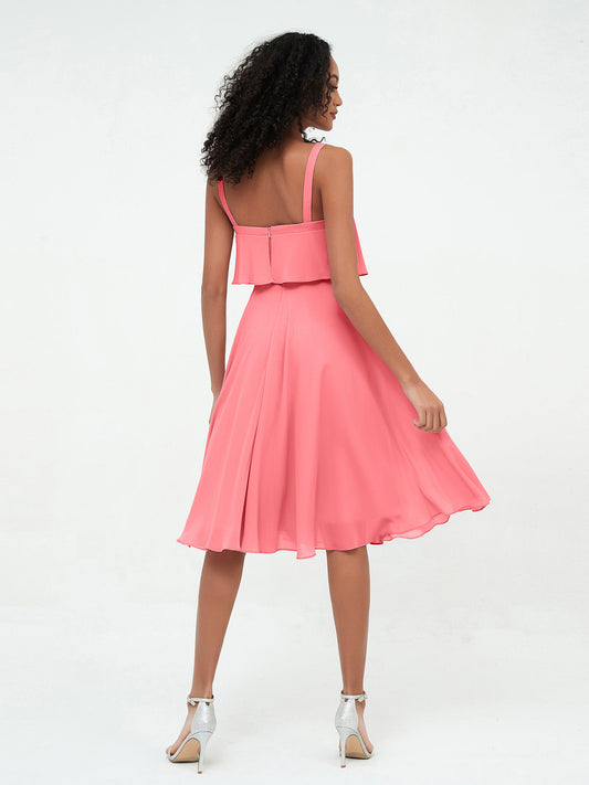 Babaroni AnnaVestidos cortos de chiffon con tirantes para la dama de honor con falda redonda Sandía