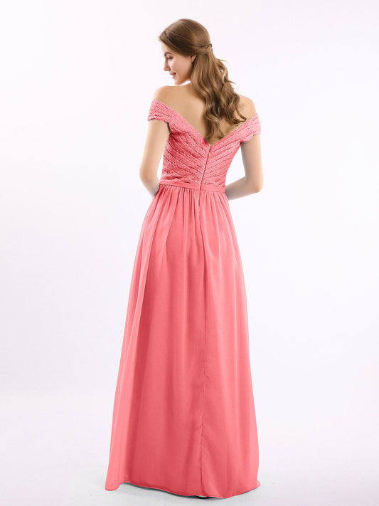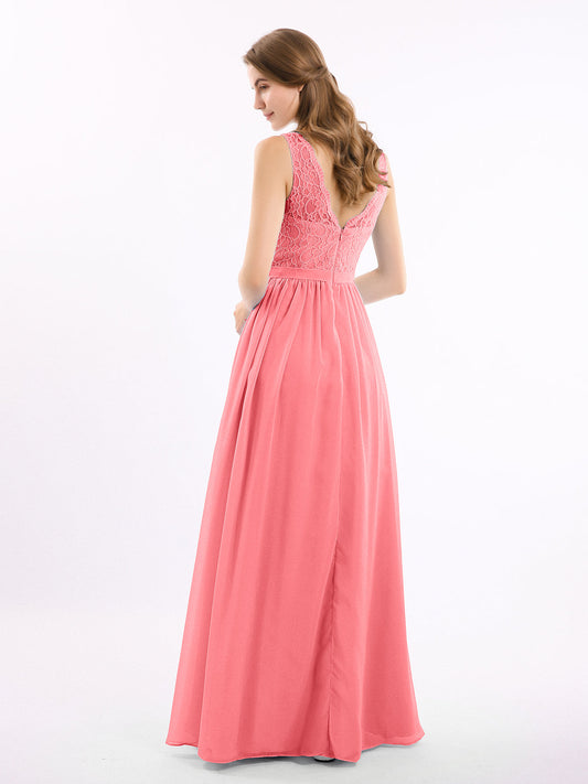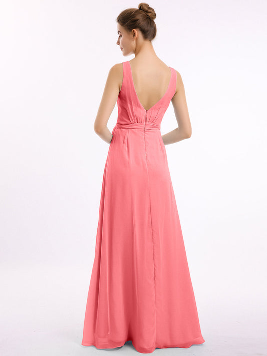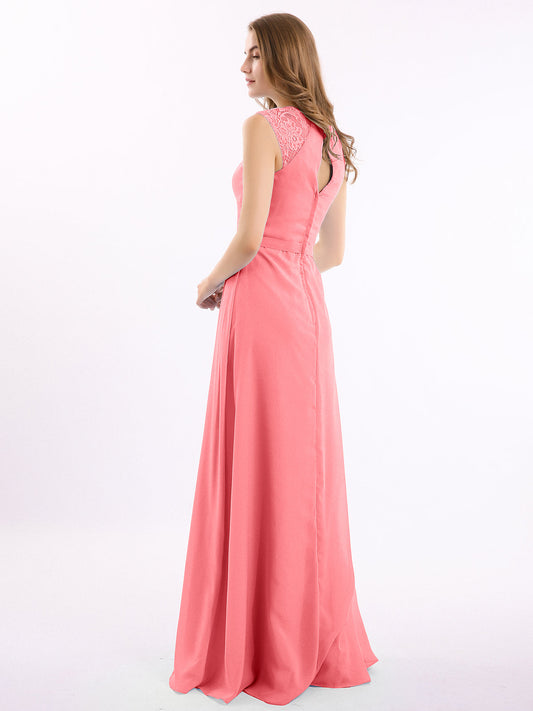 Babaroni LaurenVestidos largos de chiffon estilo princesa con abertura Sandía