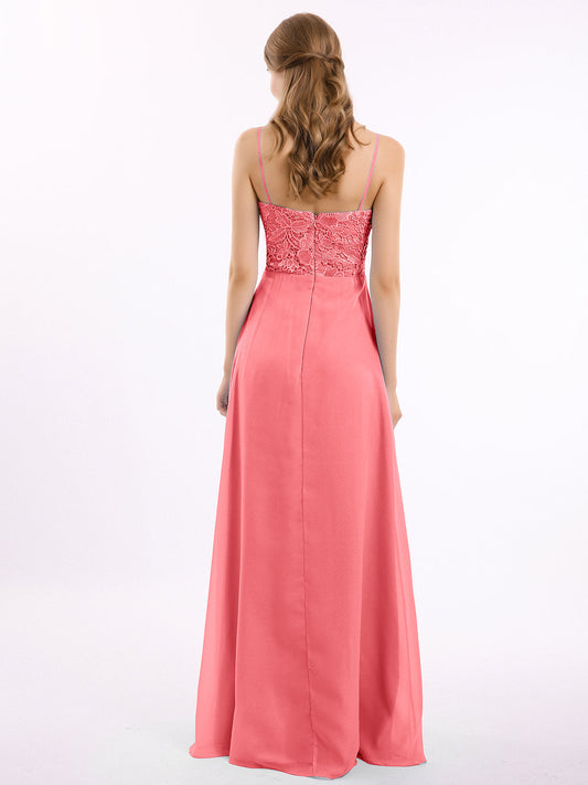 Babaroni CherryVestidos largos de encaje y chiffon con tirantes finos Sandía