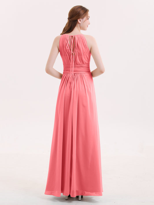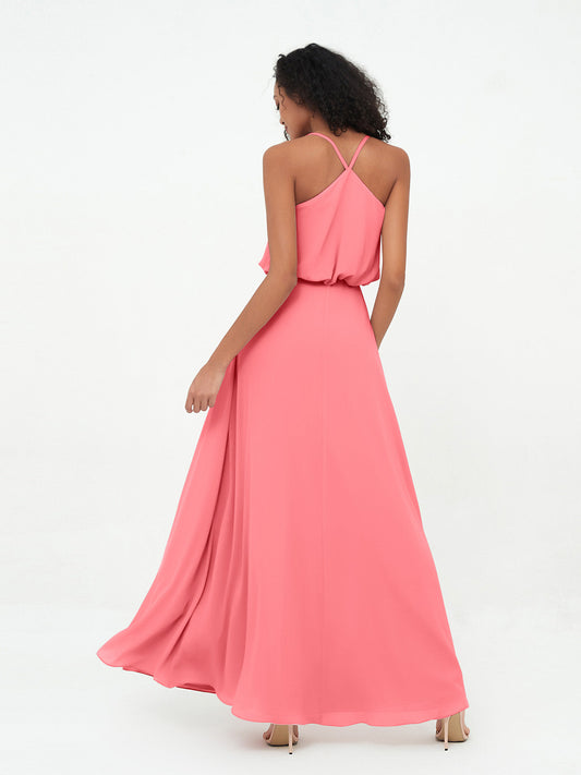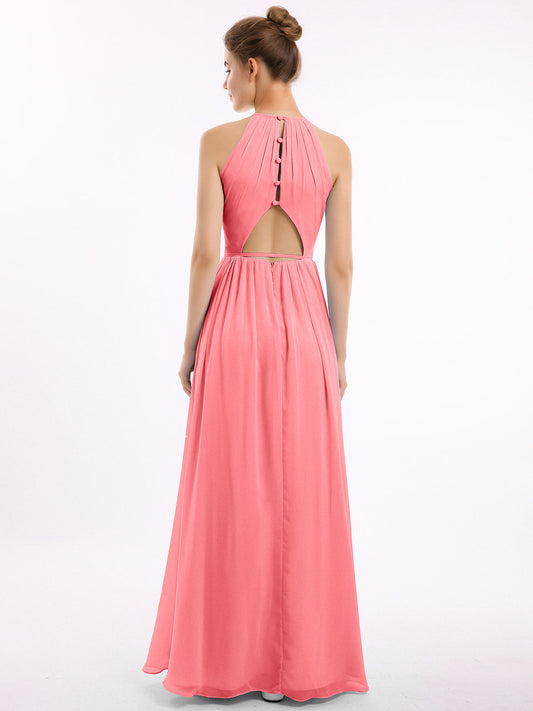 Babaroni CynthiaVestidos largos de chiffon estilo halter con espalda descubierta Sandía