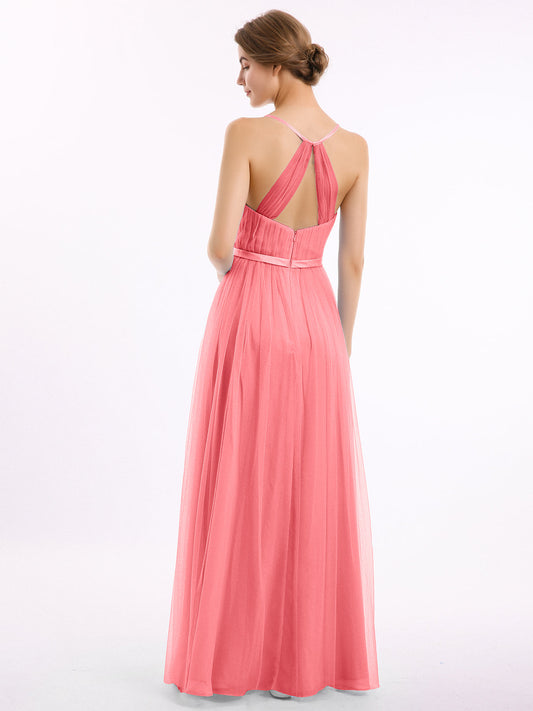 Babaroni ElinaVestidos largos de tul con escote en V y cinturón de satén Sandía