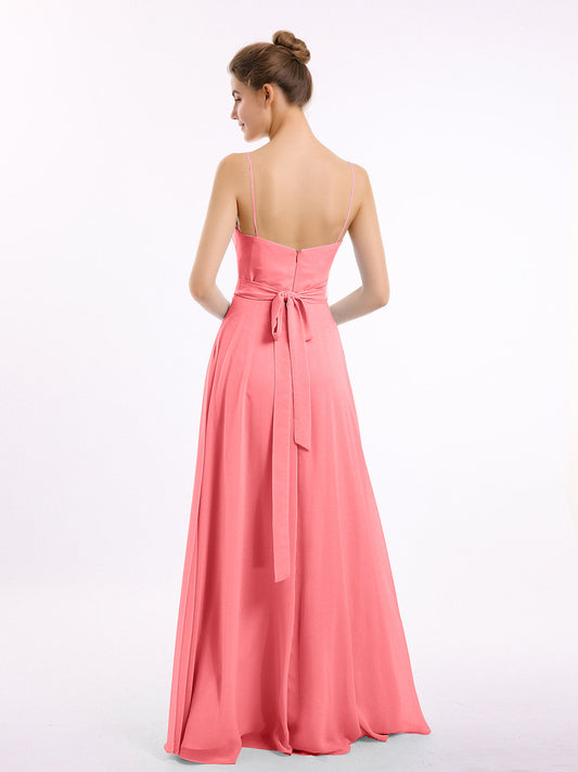 Babaroni LeeVestidos de dama de honor de chiffon con tirantes spaghetti y escote en V Sandía