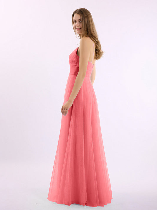 Babaroni ElvaVestido largo de tul con tirantes finos y escote en corazón Sandía