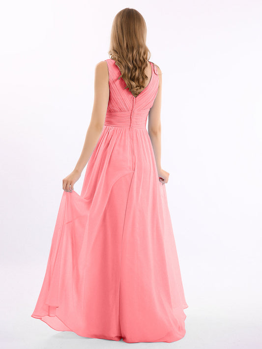 Babaroni GailVestidos largos de chiffon con escote en V hasta el suelo Sandía