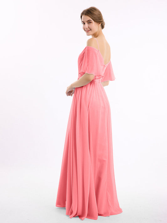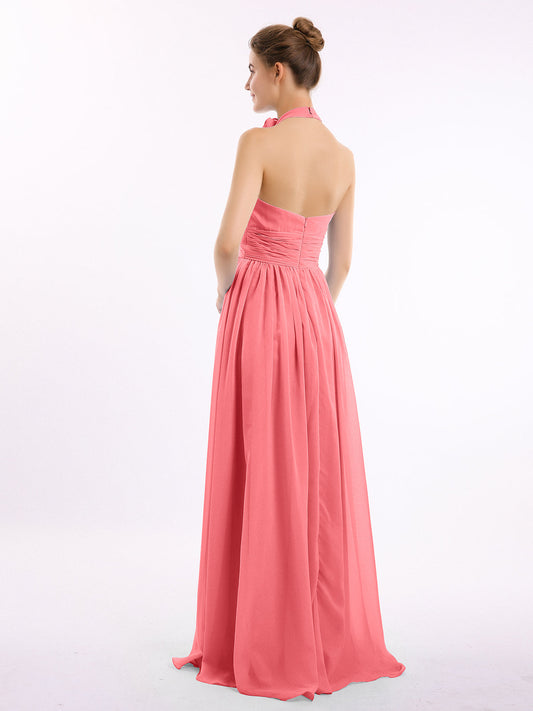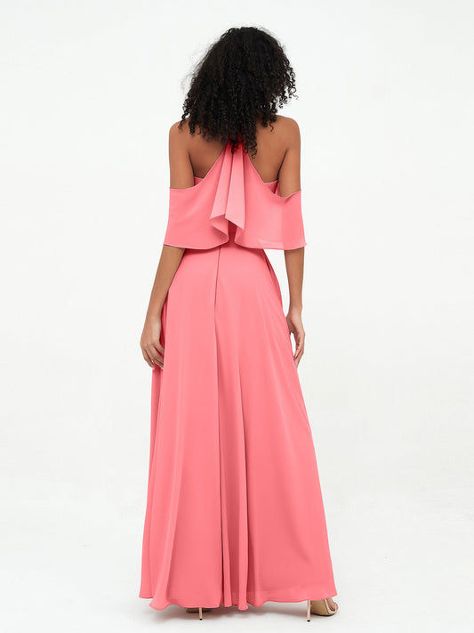 Babaroni IvyVestidos máximos de chiffon estilo halter con hombros descubiertos Sandía