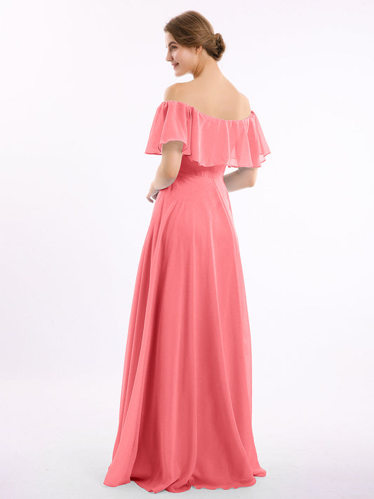 Babaroni HazelVestido largo de chiffon con hombros descubiertos Sandía