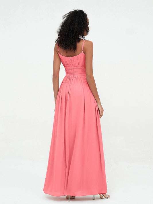 Vestidos de chiffon con tirantes finos y hombros descubiertos Sandía