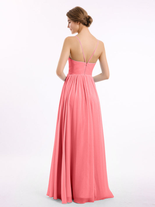 Vestidos de dama de honor de chiffon con tirantes finos y escote en V Sandía