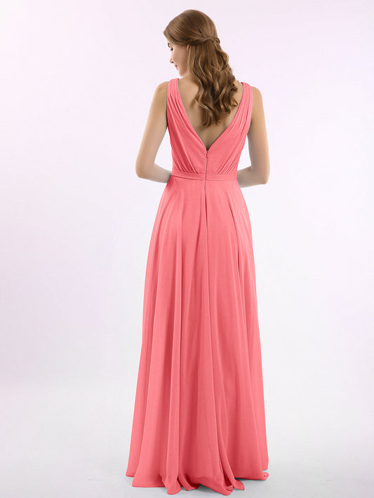 Vestidos de dama de honor de chiffon con escote en V y tirantes finos Sandía