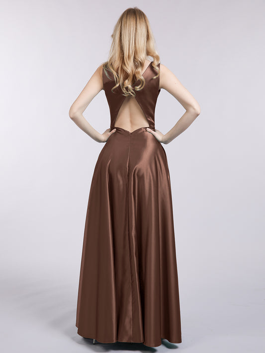 Babaroni MeroyMeroy Espalda Abierta Largo Saten Corte Con Escote En V Chocolate