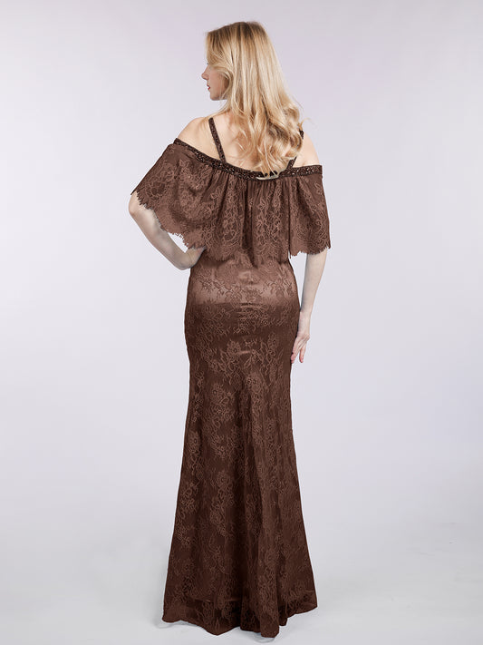 Babaroni LillianLillian Fuera Del Hombro Gasa Y Encaje Imperial Vestido Chocolate