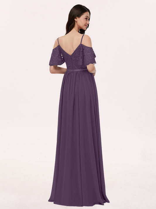Babaroni LillianLillian Fuera Del Hombro Gasa Y Encaje Imperial Vestido Ciruela