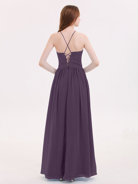 Babaroni MirandaMiranda Tirante Espagueti Encaje Y Gasa Vestido Ciruela