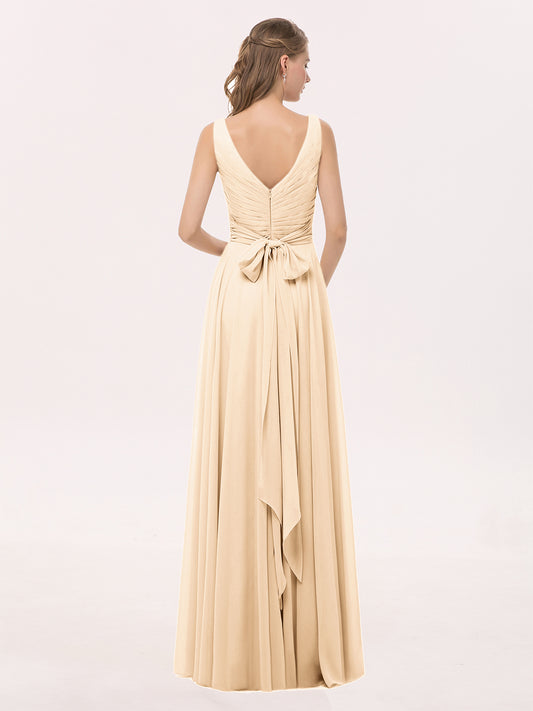Babaroni CassiopeiaCassiopeia Escote En V Gasa Largo Vestido Con Arco Melocotón Tallas Grandes