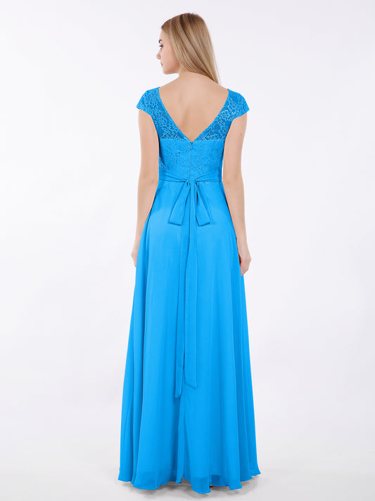 Babaroni ElsaElsa Mangas De La Tapa Gasa Vestido Con Faja Azul Océano
