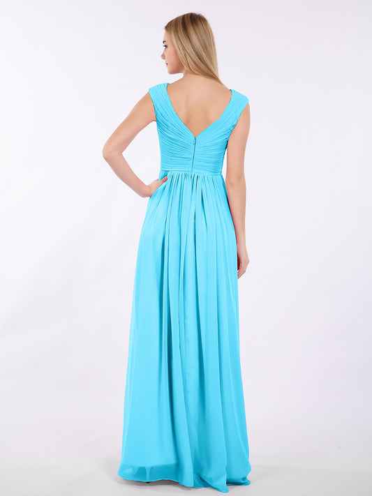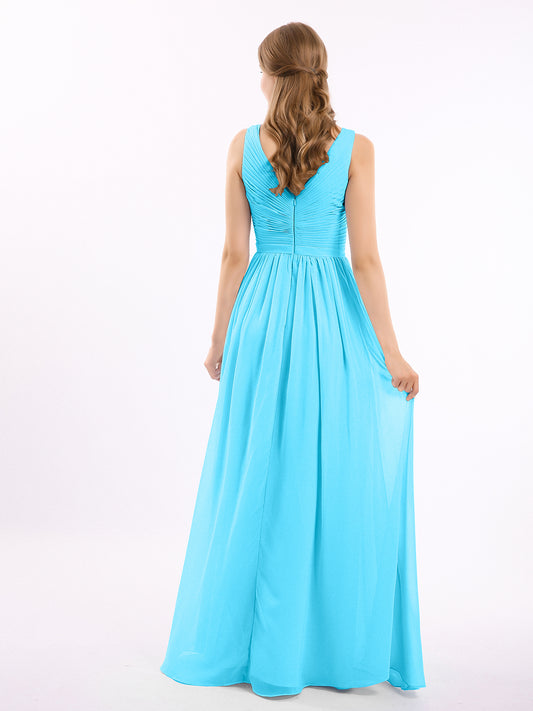 Camille Escote En V Gasa Vestido Hasta El Topillo Con Corpino Plisado Piscina