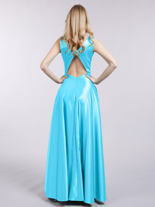 Babaroni MeroyMeroy Espalda Abierta Largo Saten Corte Con Escote En V Piscina