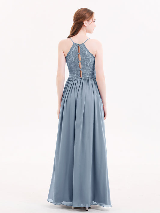 Tallulah Encaje Y Gasa Vestido De Dama De Honor Azul Polvoriento