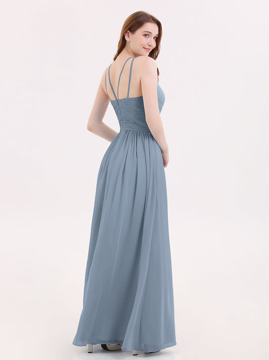 Babaroni BrookeBrooke Justo En Frente Gasa Vestido De Dama De Honor Azul Polvoriento