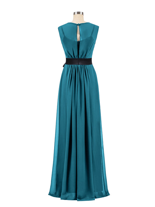 Easter Escote En V Maxi Gasa Vestidos Con Cremallera En Espalda Azul Tinta