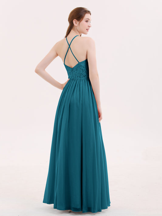 Pandora Encaje Y Gasa Cabestro Vestido Con Espalda Abierta Azul Tinta