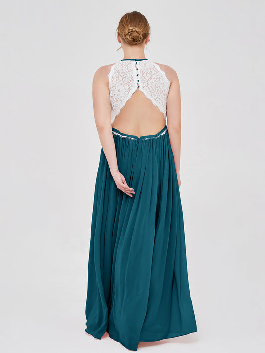 Babaroni ValerieValerie Encaje Y Gasa Vestidos Con Espalda Abierta Azul Tinta