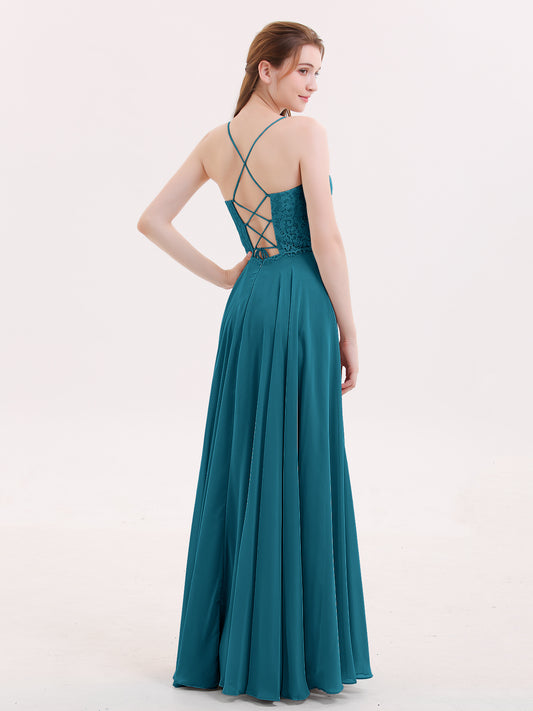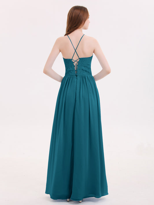 Babaroni VeronicaVeronica Tirante Espagueti Encaje Vestido Con Espalda Corse Azul Tinta