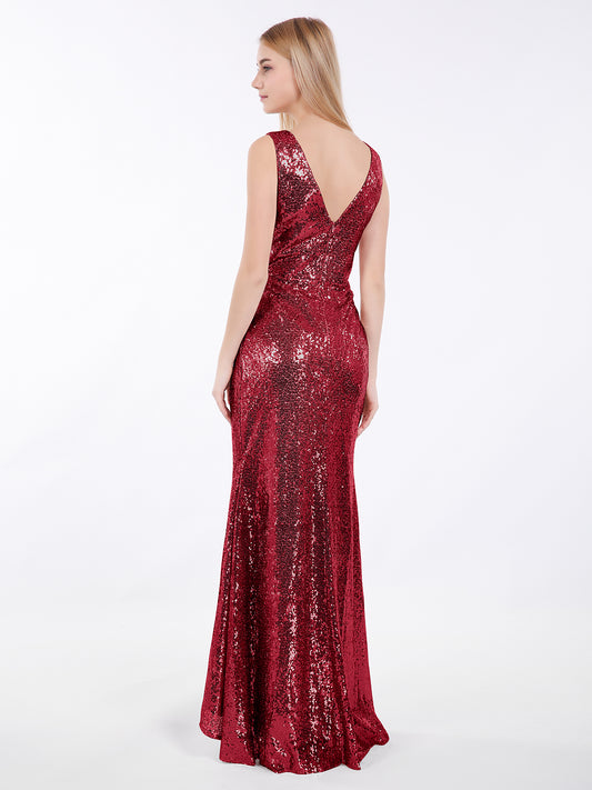 Babaroni CielCiel Corto Frente Largo Espalda Lentejuelas Vestido Borgoña