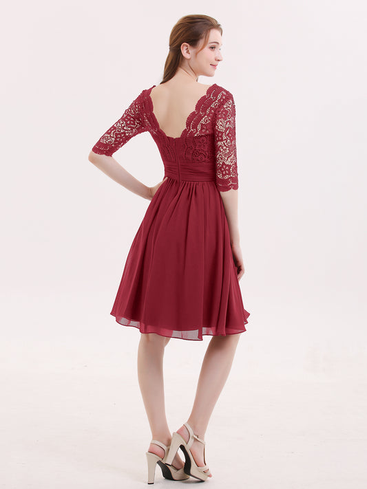 Babaroni AlexiaAlexia Encaje Y Gasa Vestido Corto Con Media Manga Borgoña