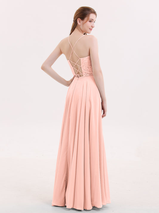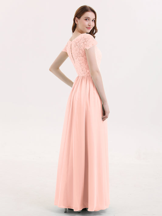 Babaroni PearlPearl Largos Vestidos De Dama De Honor Con Mangas De La Tapa Coral