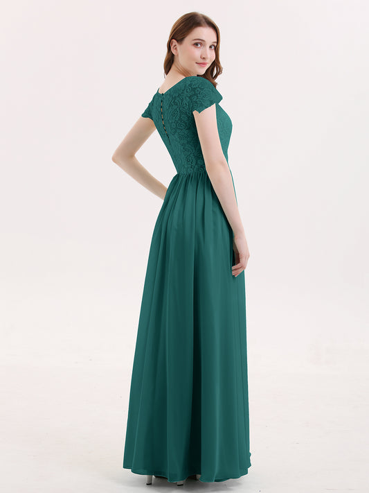 Babaroni PearlPearl Largos Vestidos De Dama De Honor Con Mangas De La Tapa Pavo Real