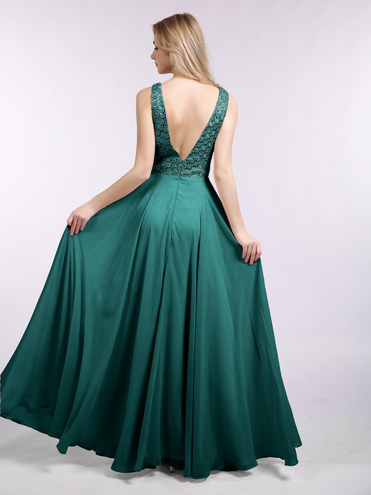 Babaroni TabithaTabitha Encaje Corpino Gasa Falda Largo Vestido Pavo Real