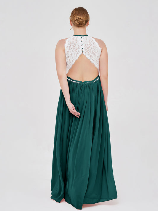 Babaroni ValerieValerie Encaje Y Gasa Vestidos Con Espalda Abierta Pavo Real
