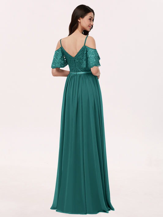 Babaroni LillianLillian Fuera Del Hombro Gasa Y Encaje Imperial Vestido Pavo Real