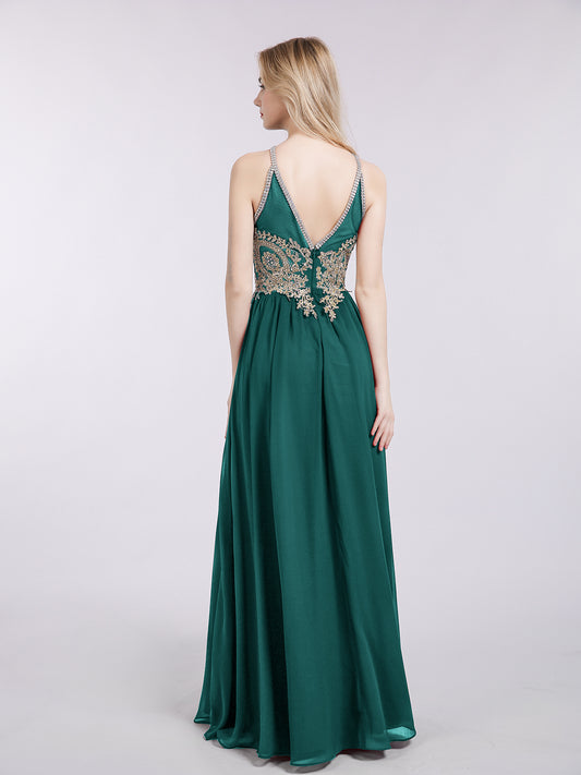 Babaroni MeroyMeroy Espalda Abierta Largo Saten Corte Con Escote En V Pavo Real