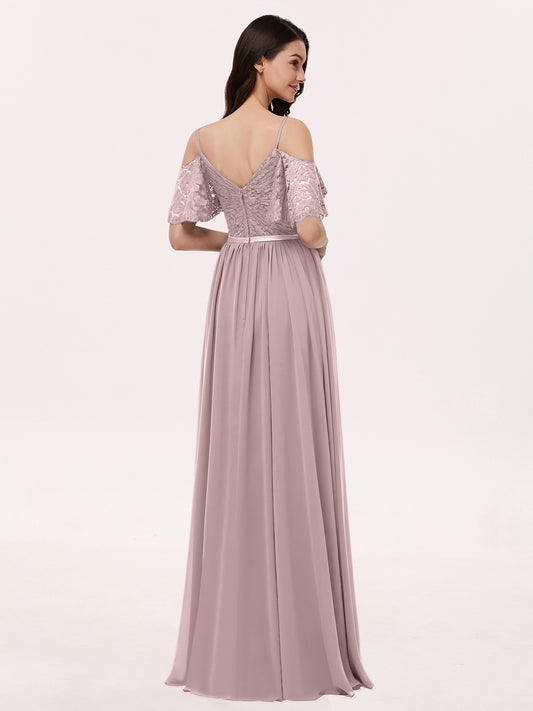 Babaroni AudreyAudrey Un Hombro Encaje Y Gasa Vestidos Malva Vintage