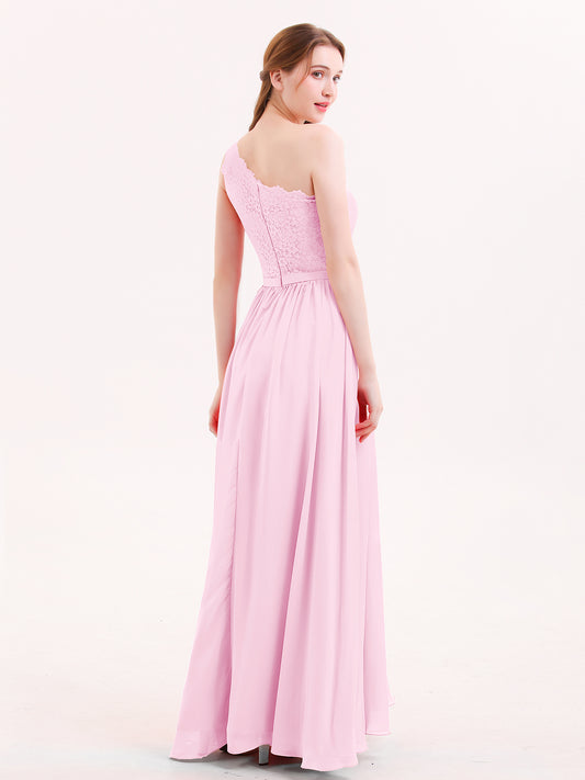 Babaroni AudreyAudrey Un Hombro Encaje Y Gasa Vestidos Rosa Chicle