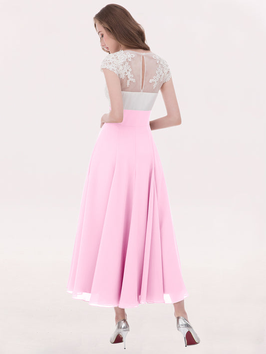 Erica Gasa Y Encaje Corto Corte De Dama De Honor Rosa Chicle