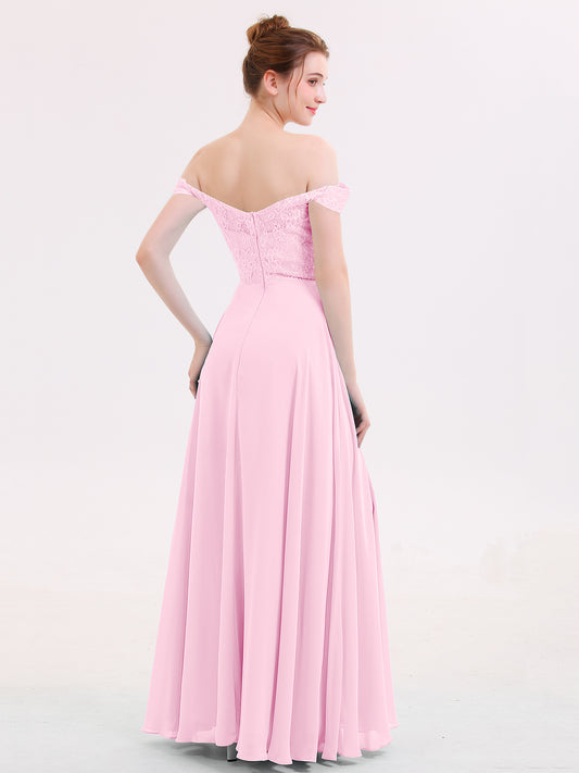 Babaroni LillianLillian Fuera Del Hombro Gasa Y Encaje Imperial Vestido Rosa Chicle
