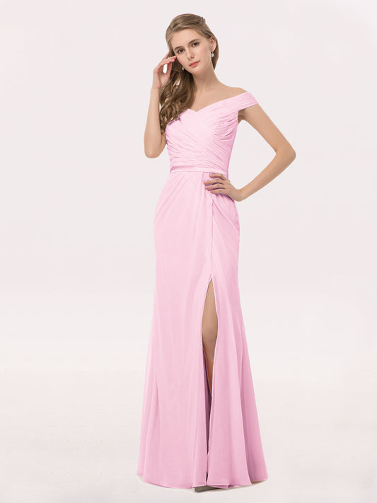 Babaroni SebastianeSebastiane Fuera Del Hombro Gasa Vestidos Con Apertura Rosa Chicle