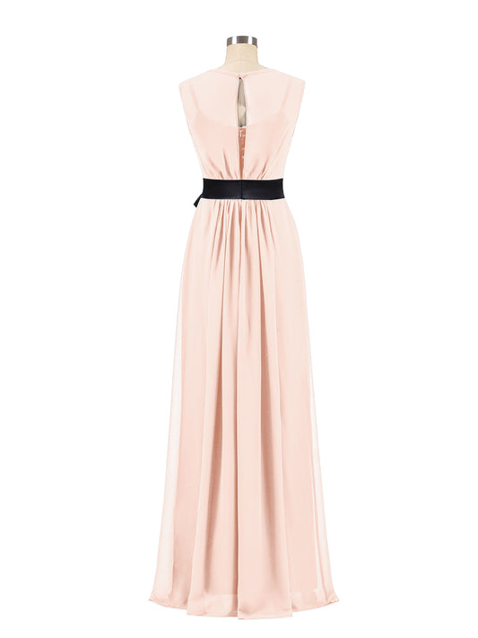 Babaroni CandanceCandance Cruzado Delante Gasa Largo Vestido Con Lazo Rosa Perlado