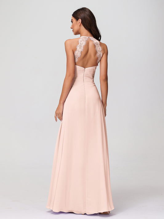 Babaroni AlaiaAlaia Cabestro Gasa Largo Corte Con Encaje Tirante Rosa Perlado