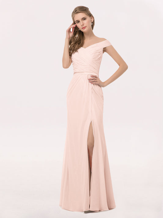 Babaroni SebastianeSebastiane Fuera Del Hombro Gasa Vestidos Con Apertura Rosa Perlado